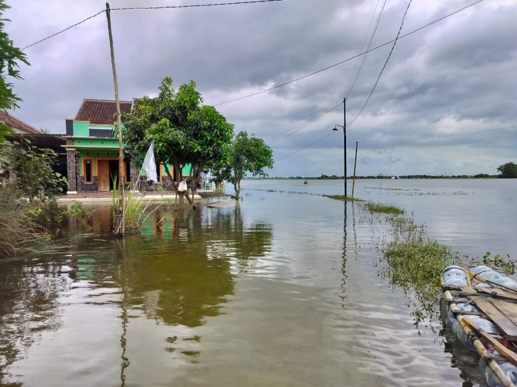 “Di rumah-rumah warga air setinggi 15-25 cm, di pekarangan 20-60 cm, sementara di area persawahan air masih setinggi 1,5 – 2 meter. Khususnya di dukuh yang letaknya di pinggir sungai, air menggenang di rumah warga masih satu meteran,” terang Pandita Sutriman kepada BuddhaZine via WhatsApp, Kamis (29/1).