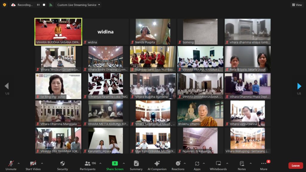 Sebagai bagian dari agenda tahunan menyambut Hari Raya Waisak, Wanita Theravada Indonesia (Wandani) kembali menggelar gerakan 1000 Atthasila online bagi umat Buddha yang tergabung dalam Keluarga Buddhis Theravada Indonesia (KBTI). Acara spiritual ini diselenggarakan melalui platform Zoom dan disiarkan secara live streaming melalui kanal YouTube Wanita Theravada Indonesia pada Minggu (21/4/2024).