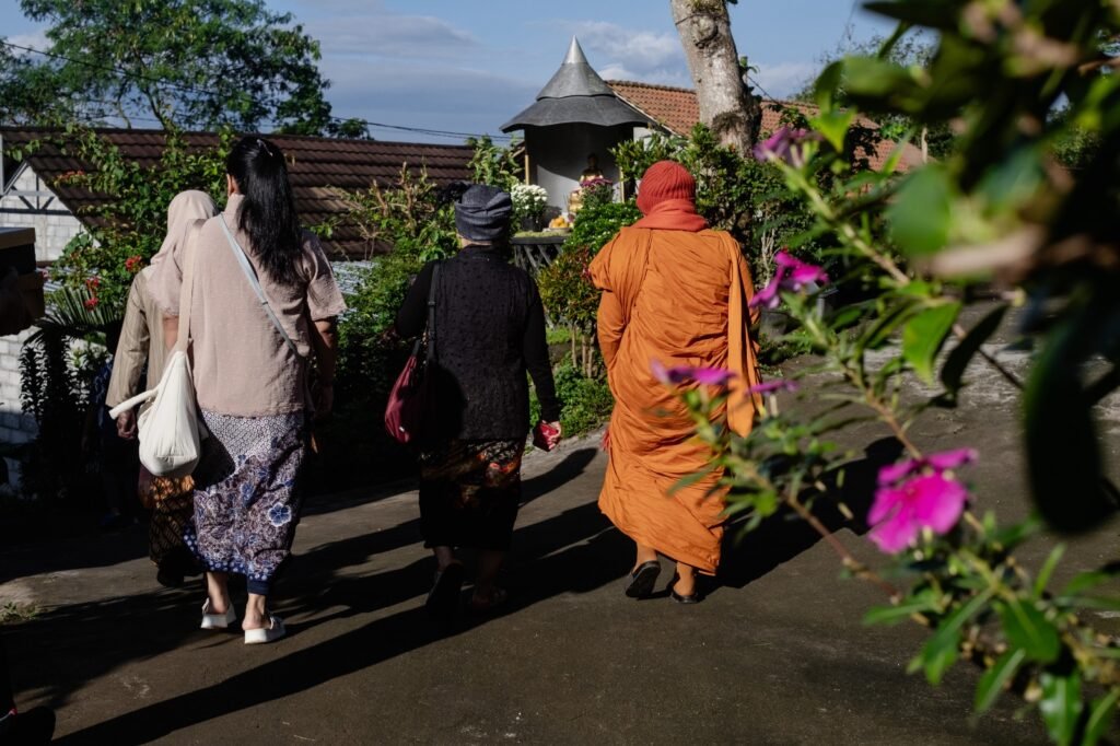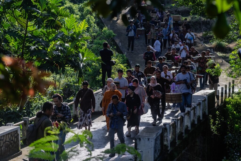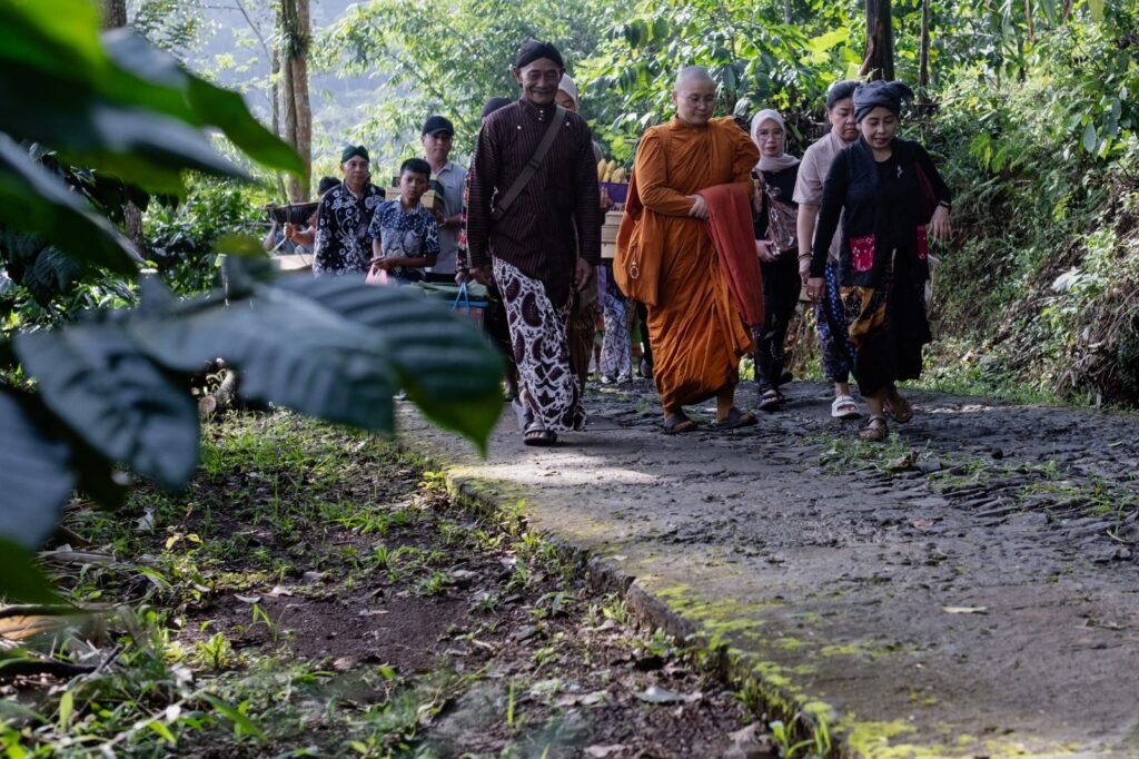 Prosesi berjalan khidmat. Di barisan terdepan, seorang Bhikkhuni berjalan berdampingan dengan Mbah Sukoyo, memimpin rombongan masyarakat yang mengenakan busana adat Jawa. Pagi itu cuaca cerah, seakan memberi ruang bagi perjalanan sakral menuju makam leluhur yang telah lama menjadi titik temu dua dusun: Krecek dan Gletuk.