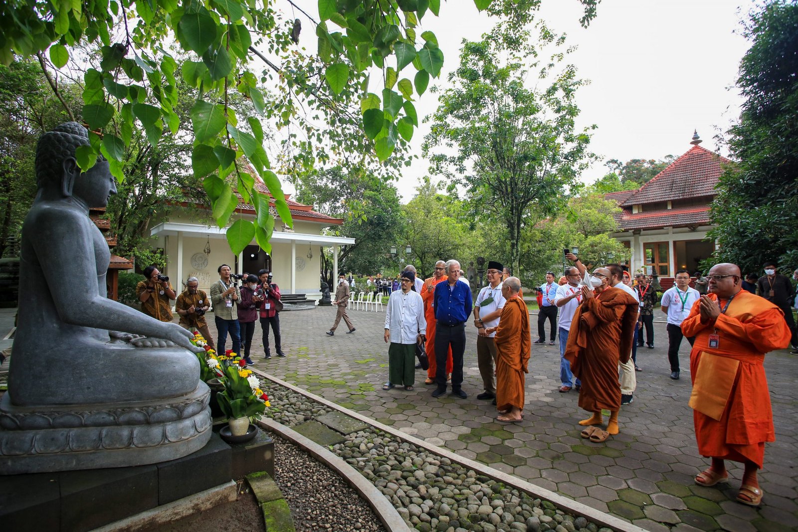Delegasi Religion 20 (R20) forum dari 32 negara kunjungi Vihara Mendut, Kota Mungkid, Kab. Magelang, Minggu (6/11). Sekitar pukul 9 pagi, rombongan yang berjumlah kurang lebih 100 orang tiba di Vihara Mendut dan disambut dengan hangat Kepala Sangha Theravada Indonesia (STI), Bhikkhu Sri Pannavaro Mahathera.