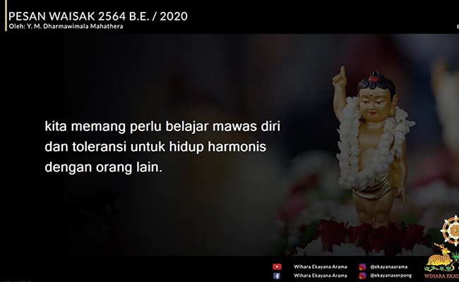 Perayaan Waisak di Wihara Ekayana Arama (WEA), Jakarta Barat, dan Wihara Ekayana Serpong (WES) tahun 2020 ini berlangsung secara online. Meski demikian, kesemarakan tetap terasa dalam kesederhanaan. EBRC (Ekayana Buddhist Residence Choir) dan Patrick menyemarakkan acara dengan lagu-lagunya. Acara dihadiri oleh Kepala Wihara Ekayana Arama, Bhante Aryamaitri, dan para anggota Sangha lainnya.