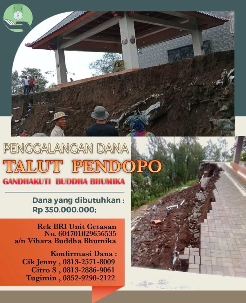 Hujan lebat yang melanda daerah lereng Gunung Merbabu sebelah utara pada Jumat (24/11/2023) pukul 15.00 WIB mengakibatkan terjadinya longsor pada talut bangunan Pendopo Vihara Buddha Bhumika di Dusun Thekelan, Desa Batur, Kecamatan Getasan, Semarang. Kerugian akibat kejadian tersebut diperkirakan mencapai ratusan juta rupiah.