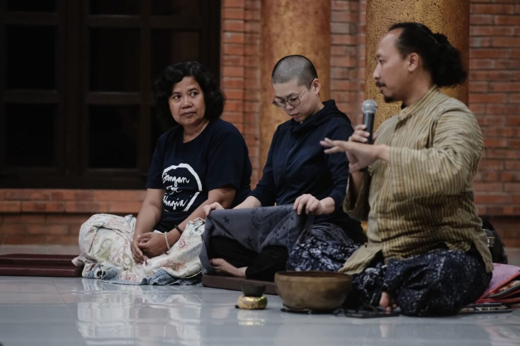 Acara ini difasilitasi oleh Aria Widyanto, Founder Bodhicitta Institut, dengan pembimbing meditasi Moh. Zaim, alumni Biara Buddha Plum Village. Keduanya memandu peserta untuk menumbuhkan kesadaran melalui latihan sederhana namun mendalam—mulai dari duduk hening hingga menyadari napas dan langkah dengan penuh perhatian.