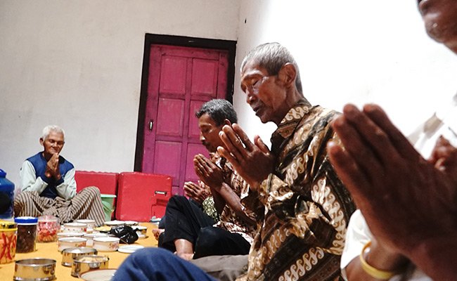 Malam itu ditemani teh hangat, cemilan, dan lintingan, beberapa umat; Pak Warsinah, Mbah Amrih dan Pak Sumedi saling berbagi cerita mengusir sunyinya suasana di teras vihara. Pak Amrih mengisahkan bagaimana kondisi umat Buddha di Dusun Kendal saat ini.