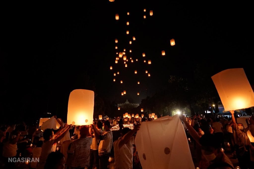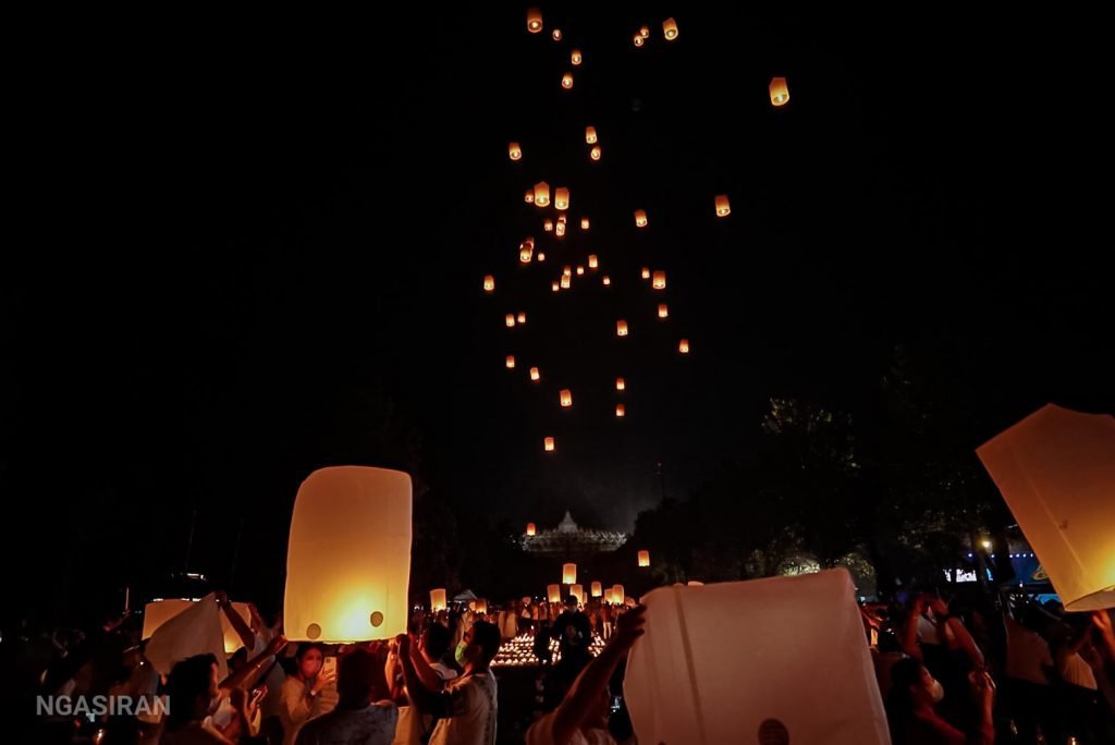 Tidak lama kemudian, ribuan lampion menghiasi langit Borobudur. Mereka yang hadir mulai mengeluarkan telfon pintar untuk mendokumentasikan momen langka yang sudah dua tahun tertunda akibat pandemi itu. [MM]