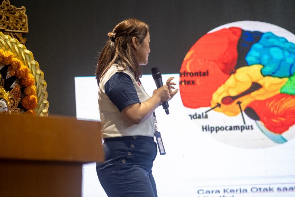 Dalam sesi tersebut, peserta diajak mempraktikkan metode S.T.O.P: Stop (berhenti), Take (ambil jeda), Observe (mengamati), dan Process (memahami). Mereka juga menuliskan pikiran, perasaan, dan sensasi tubuh yang hadir selama latihan. “Awalnya pikiran saya penuh, tetapi perlahan terasa ringan,” ungkap Bu Eve dalam kesaksiannya. Pak Edi menambahkan, “Latihan sederhana ini membawa kedamaian. Saya merasakan napas jadi lebih lapang.”