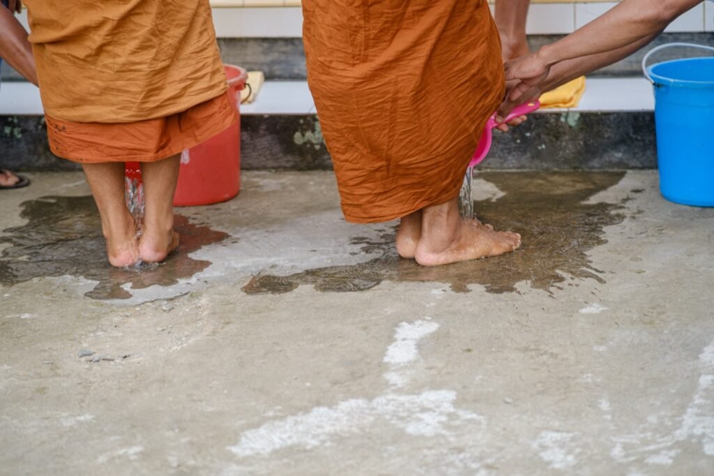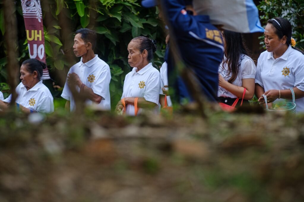 Tepat pukul 05.30 WIB, dengan pakaian serba putih yang melambangkan kesucian, mereka berjalan khidmat. Setiap tangan membawa wadah berisi makanan—persembahan yang akan diserahkan kepada Sangha. Pindapata, atau penerimaan dana makanan oleh para bhikkhu, segera dimulai.