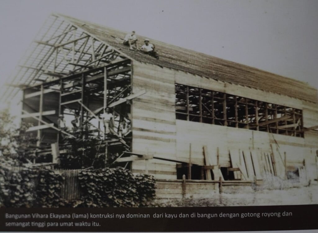 Dengan So Kim Leng sebagai pengawas sekaligus kontraktor, vihara pertama di Samarinda dibuat semipermanen dengan bahan kayu dan berlantai dua. Tahap demi tahap pembangunannya terus dijalani dengan sabar dan tekun. Penggalangan dana terus berlangsung, dan panitia pembangunan vihara pun menerima sumbangan bahan bangunan dari banyak pihak. Hingga akhirnya vihara selesai terbangun pada 1969, dan diberi nama “Ekayana” oleh Bhikkhu Girirakkhito yang berkunjung ke Samarinda. Nama “Ekayana” dipilih karena memiliki makna “Yang Nomor Satu” atau “Yang Pertama”.