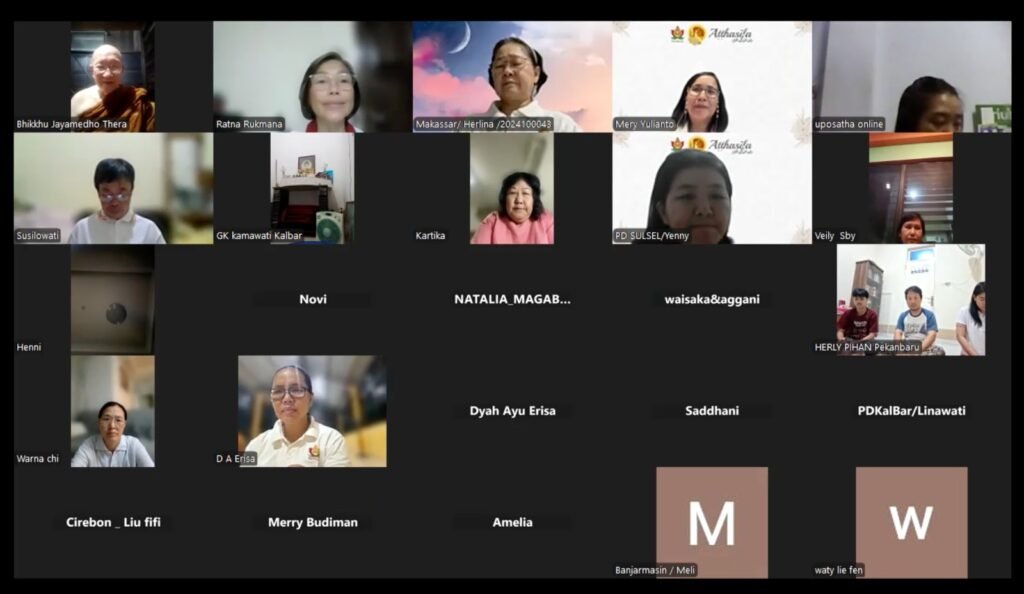 Wanita Theravada Indonesia (Wandani) kembali menggelar Atthasīla Online, Minggu, 7 September 2025. Acara ini diikuti oleh umat Buddha dari berbagai daerah di Indonesia dan menghadirkan Bhikkhu Jayamedho sebagai pembimbing umat dalam pengambilan delapan sila, sekaligus menguraikan Dharma tentang atthasīla dan manfaatnya.