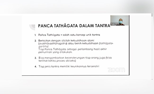 Kemudian di sesi keempat, Śrāmaṇeri Tenzin Tshojung, penerjemah kitab Buddhis dan penerjemah lisan bagi guru-guru Dharma, memberikan penjelasan perihal pemahaman Tantra melalui konsep Pañca Tathāgata dalam Sang Hyang Kamahāyānikan.